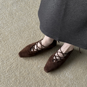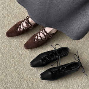 赫本风文艺复古绑带鞋头层羊皮2025秋季粗跟中跟小方头真皮单鞋女