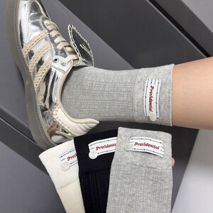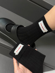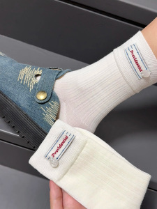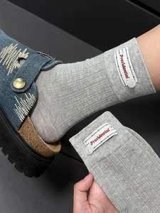 韩版灰色布标贝壳袜子女中筒袜春秋夏季无骨堆堆袜搭配勃肯鞋