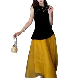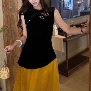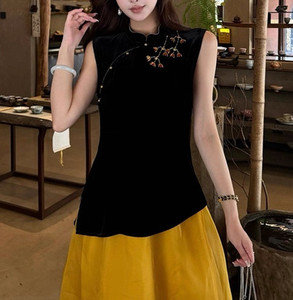 爆款2025新中式重工钉金叶子真丝丝绒收腰无袖小上衣时尚百搭马甲