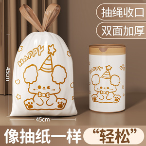 大垃圾袋抽绳式家用免撕手提袋大容量绿熊猫加厚家居不易破清洁袋