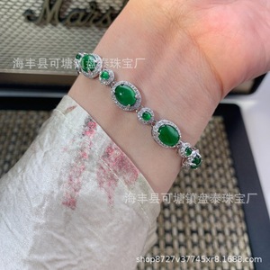 厂家批发 天然危料翡翠宫廷风手链 S925银镶嵌