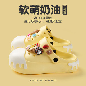暖之缘奶油洞洞鞋女夏拼色diy冰淇淋沙滩鞋包头外穿时尚拖鞋女