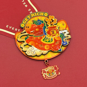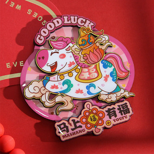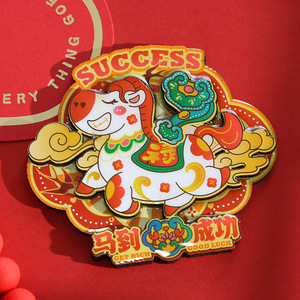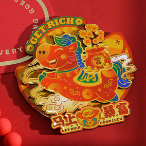 新款马上暴富马年冰箱贴卡通可爱文创木质3D立体磁性新年装饰贴