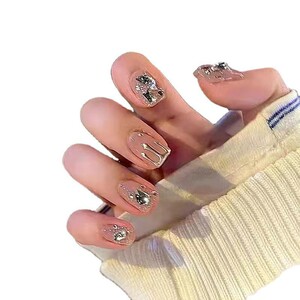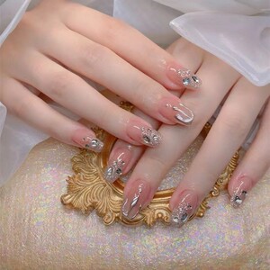 X039魔镜皇冠长款穿戴甲美甲甲片批发手工穿戴美甲贴片显白指甲贴