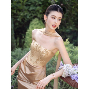 金色晨袍女新娘新中式绝美订婚晚礼服裙敬酒服感宴会气质名媛礼服