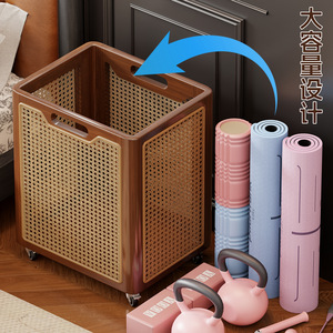 实木瑜伽垫收纳筐运动健身器材收纳篮家用篮球收纳架玩具置物架子