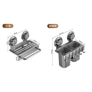 跨境厨房免打孔吸盘筷笼壁挂式带钩子置物架可沥水收纳筷子筒刀架