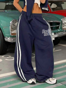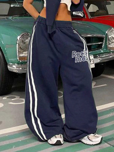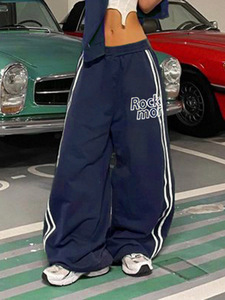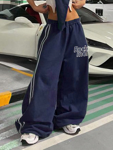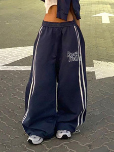 美式街头风酷妹织带撞色印花梭织裤跨境低腰宽松基础直筒休闲长裤