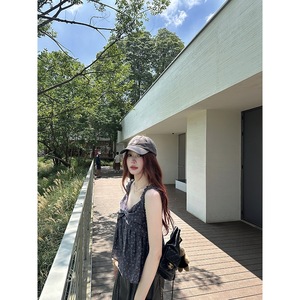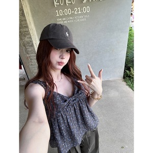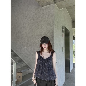 Go Go Eyes 甜美蝴蝶结碎花娃娃衫女夏季宽松a字吊带莱赛尔上衣