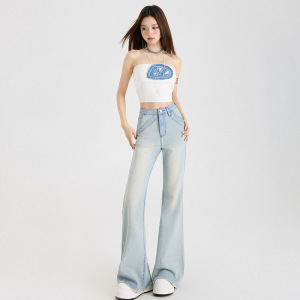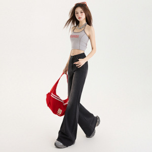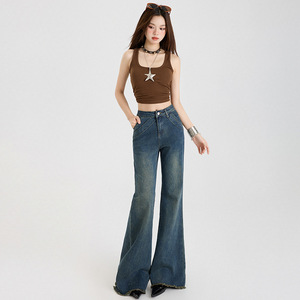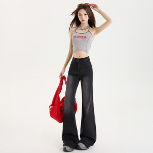 厂家直销黑灰微喇牛仔裤女2025春秋新款高腰显瘦毛边喇叭裤阔腿裤
