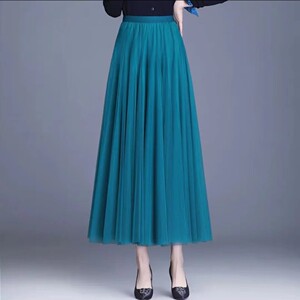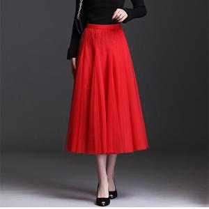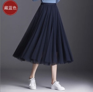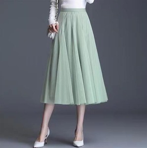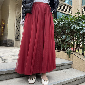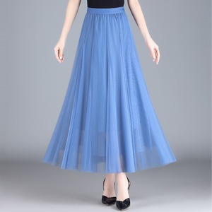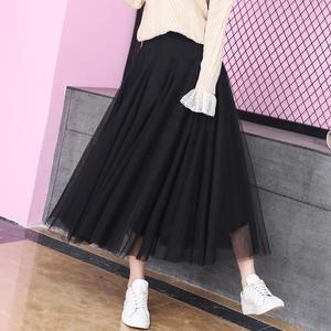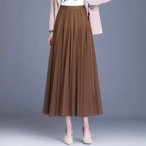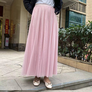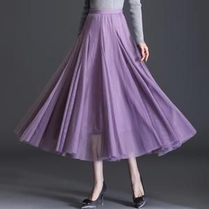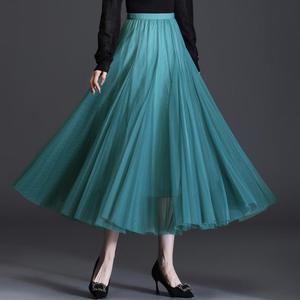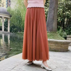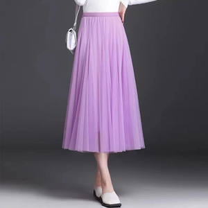 30片新款网纱半身裙女中长款高腰百褶垂感网纱裙显瘦裙子