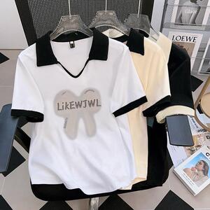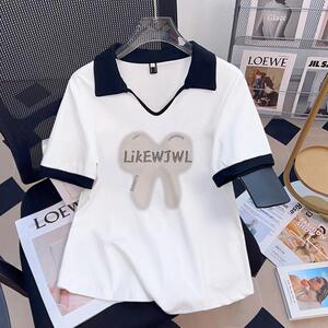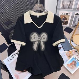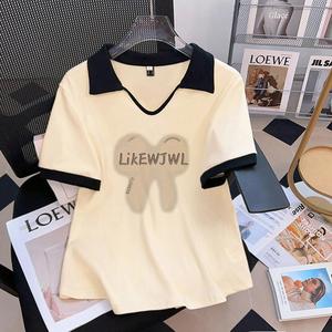 大码女装polo领印花短袖t恤女2025夏季新款胖mm遮肉显瘦宽松上衣