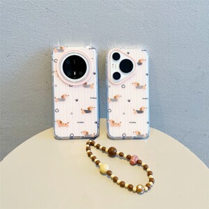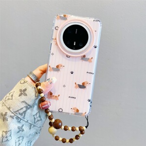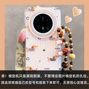 适用华为mate70pro+手机壳韩风ins可爱卡通条纹腊肠狗mate60pro手链挂绳pura70pro新款双层mate70全包防摔女