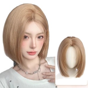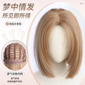 高层次金色一刀切直发女全头套日常短发中分波波头整顶全头套假发