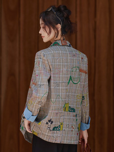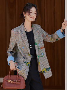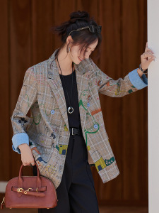 格子西装外套女春秋2025新款高级感韩系牛仔休闲小个子时尚西服潮