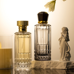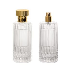 新款透明100ml条纹圆柱形喷雾瓶化妆哦旅行分装香水精油玻璃瓶