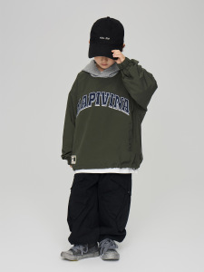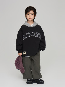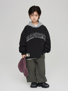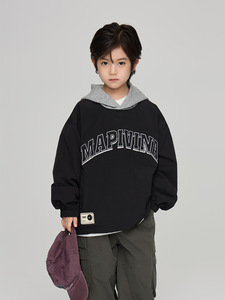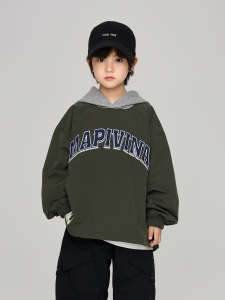 2025秋季童装新款男中大童字母刺绣工装夹克儿童假两件连帽外套潮