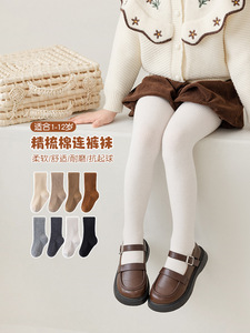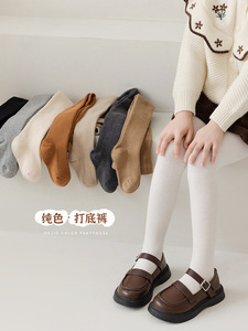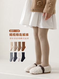 包邮纯色针织女童打底裤2025秋冬新素色细抽条女童外穿连裤袜批发
