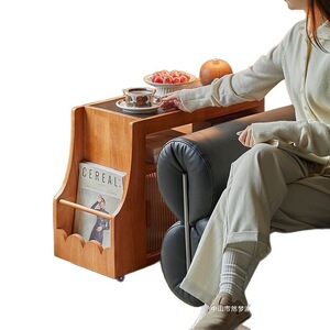 实木边几带轮可移动沙发边柜法式复古客厅收纳置物柜岩板台面茶几