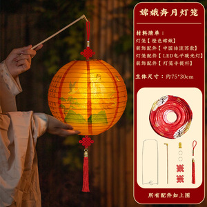 嫦娥奔月手提灯笼【30CM】带提杆+流苏+卡扣暖光灯
