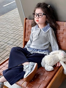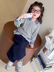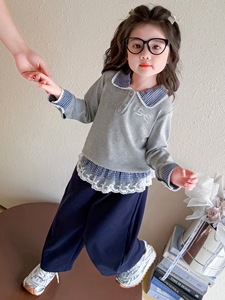 女童拼色花边套装2025秋季新款韩版两件套一件代发洋气网红童装潮