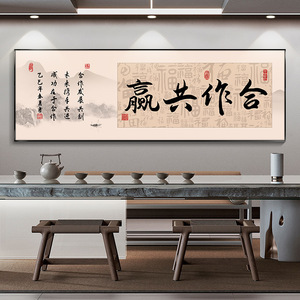 八方来财茶室装饰画字画紫气东来办公室书房壁画客厅背景墙挂画