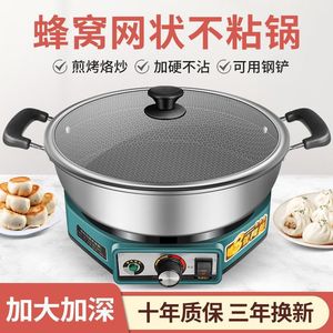 不锈钢电饼铛加深加大多功能电煎锅家用平底烙饼锅蜂窝不粘锅煎烤