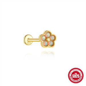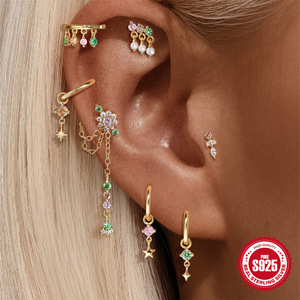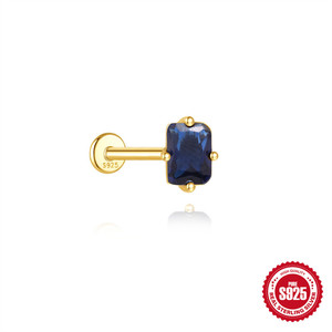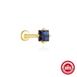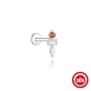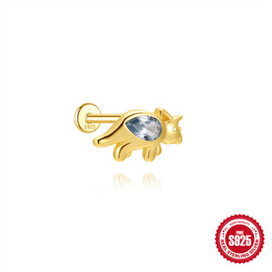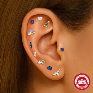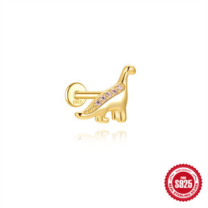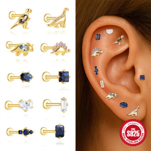 S925纯银几何彩钻趣味恐龙平头螺纹穿刺耳骨钉欧美跨境热销耳饰品