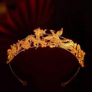 新娘秀禾头饰金色中式凤冠发冠龙凤金色皇冠秀禾服中式新娘头饰