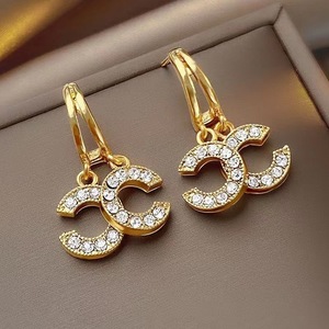满钻交叉字母C 耳钉优雅气质名媛风耳环个性独特轻奢高级感耳饰女