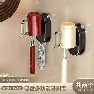 吸盘牙刷置物架免打孔卫生间牙膏牙缸收纳挂架家庭装挂式刷牙杯架