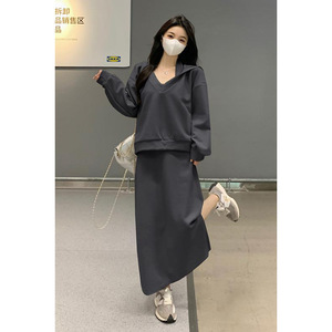时尚洋气套装女春2025新款韩系休闲减龄卫衣外套挂脖背心裙两件套