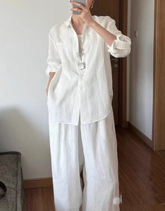 2025早秋上新潮流新款纯亚麻衬衫老钱风宽松慵懒休闲百搭长袖衬衣