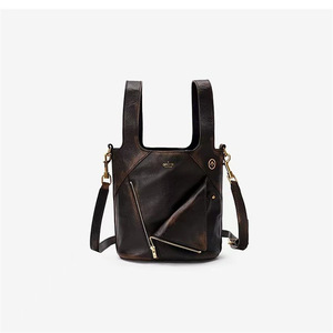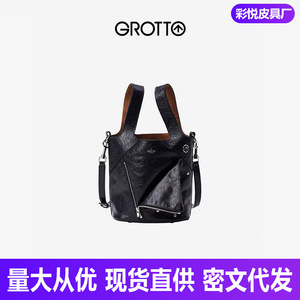 GROTTO个乐翻领菜篮子休闲时尚小众设计复古大容量单肩斜挎手提包