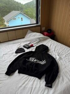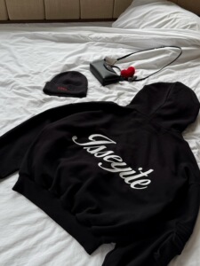 美式休闲宽松艺术字母图案签名秋冬季街头百搭连帽卫衣