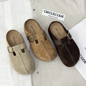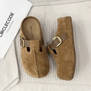 真皮勃肯拖鞋包头半拖女秋季新款复古厚底舒适百搭拖鞋xhr757-521