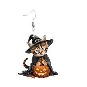 跨境新品万圣节派对可爱魔法小猫南瓜亚克力耳环创意设计感耳环