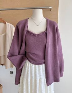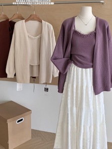 韩版慵懒风时尚气质花边领吊带背心开衫百搭针织衫毛衣外套两件套