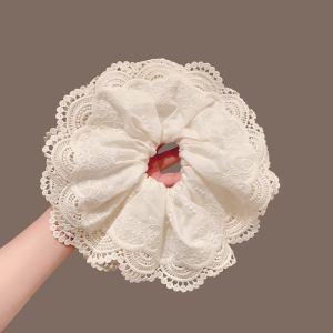 柏林夜曲~法式温柔米白花纹大肠发圈2025新款高级感简约发饰头绳