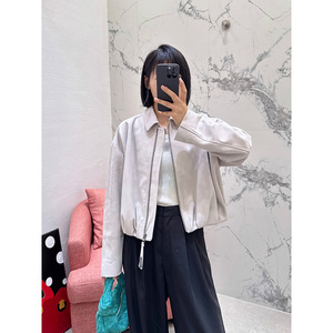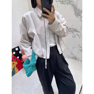 2025真皮女休闲宽松复古拉链翻领外套减龄随性百搭显瘦休闲简约