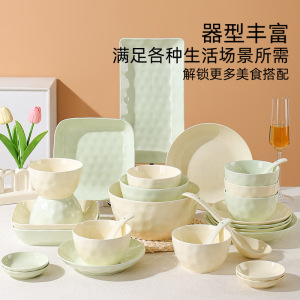 奶油石纹高颜值餐盘陶瓷盘子家用碗碟套装高级感高温烤花碟子菜盘