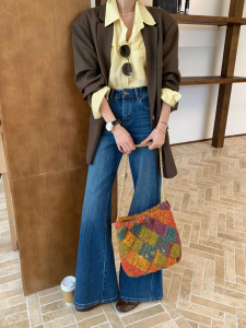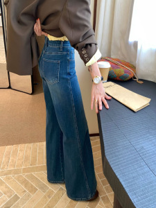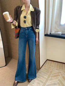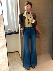 秋上新TOP欧制四面弹超质感韩版简约大气不贴腿筒喇叭牛仔裤7830