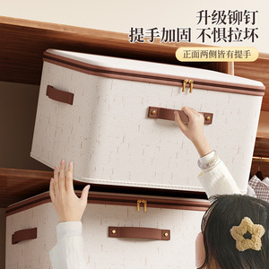 跨境爆款天山棉麻拉链收纳箱衣服带盖玩具收纳衣物家用卧室收纳箱