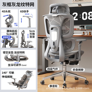 旗舰款:灰龙纹特网+网面搁脚(9D扶手+静音轮+坐深调节)*跨境推荐