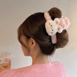 毛绒卡通抓夹秋冬韩式毛毛发夹少女可爱发卡后脑勺盘发鲨鱼夹大号