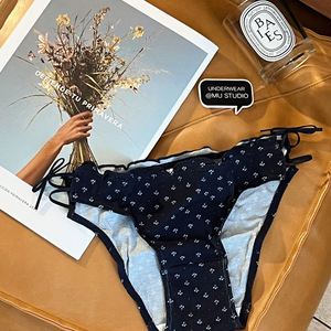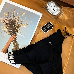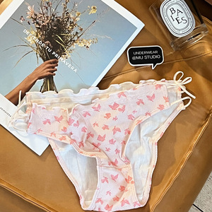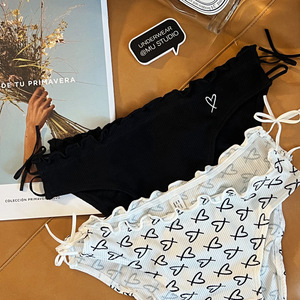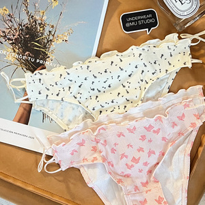 法式三角内裤小清新罗纹棉坑条纯欲可爱田园爱心镂空日系碎花系带