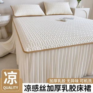 夏季乳胶冰丝凉席三件套床裙家用可水洗单人空调席公主风纯色席子
