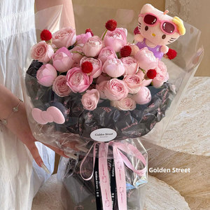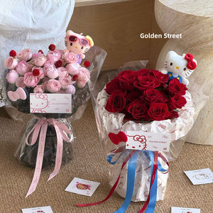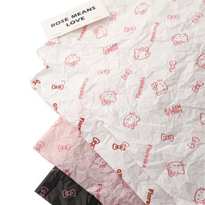 网红中秋节凯特喵印花褶皱纸花束包装纸防水加厚花艺资材花店材料
