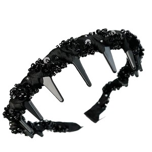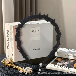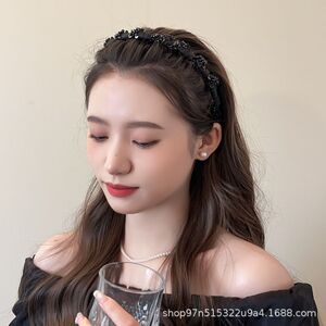 2025新款巴黎王妃镶钻发箍外戴黑色发箍高颅顶带齿梳波浪防滑头箍