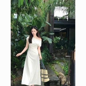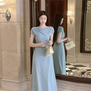 气质知性简约短袖连衣裙女夏季修身显瘦长短款裙子